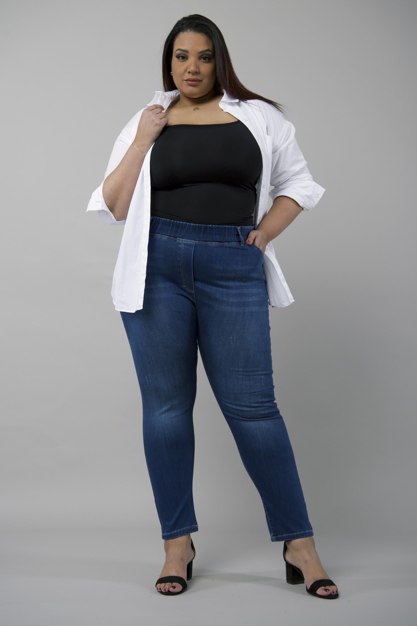 JEANSY PLUS SIZE Z PROSTĄ NOGAWKĄ