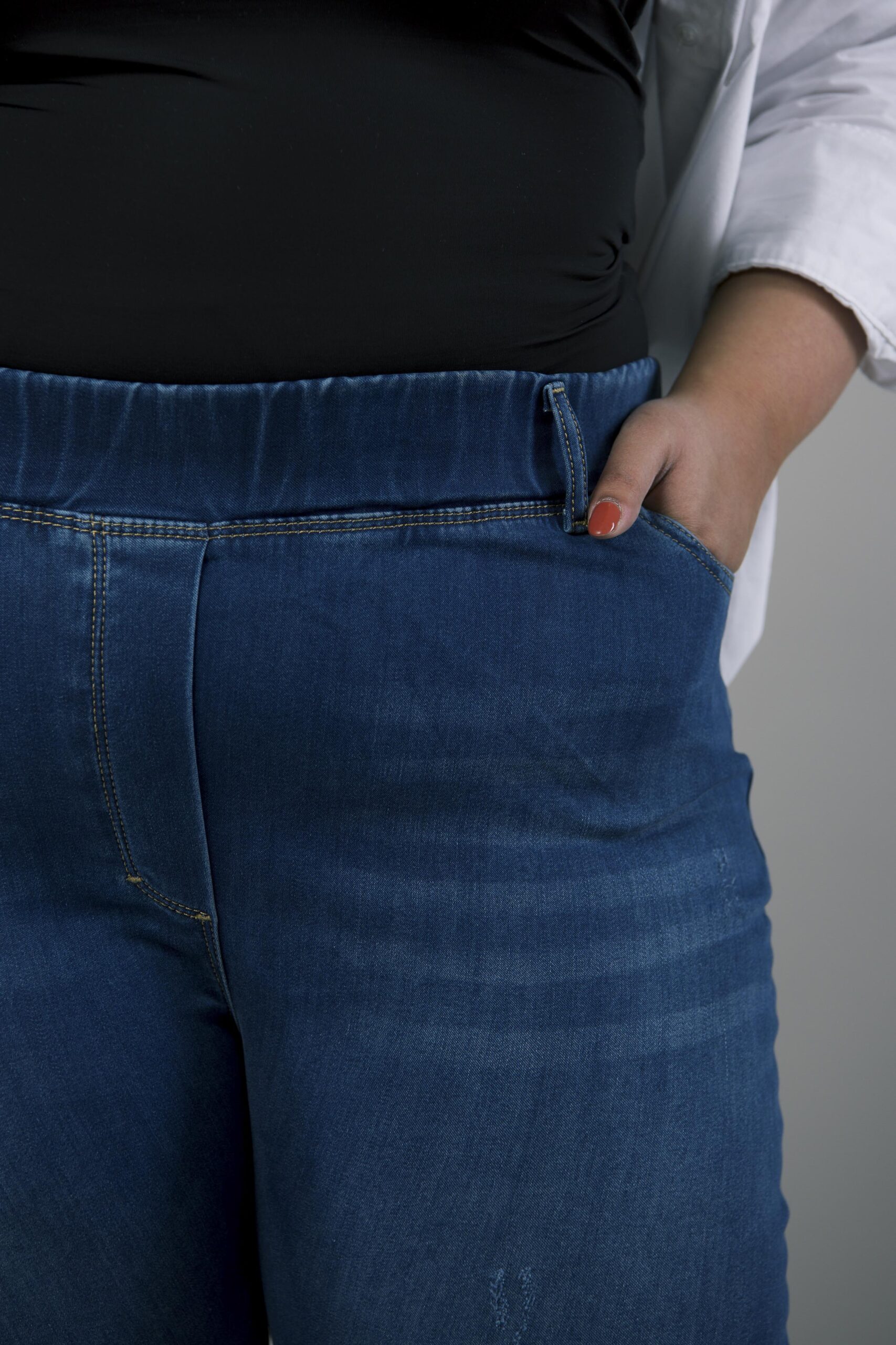 Spodnie Jeans Guma w Pasie Vera. Model z wysokim stanem. Z przodu i z tyłu wsuwane kieszenie.